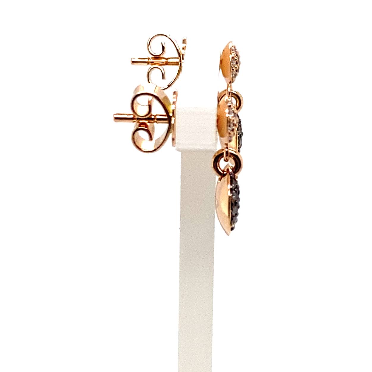 14 krt rose gouden oorstekers met wit en bruin diamant0,14ct w/si en 0,40ct bruin