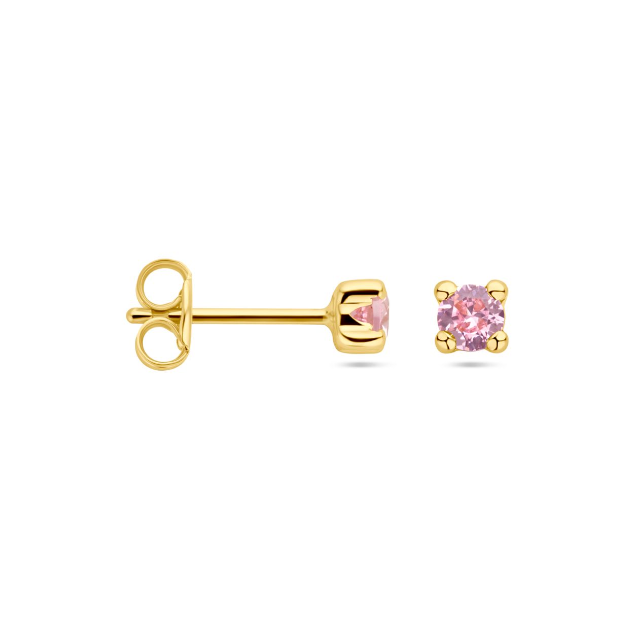 14k Geelgouden oorknoppen uitgevoerd met roze zirkonia.