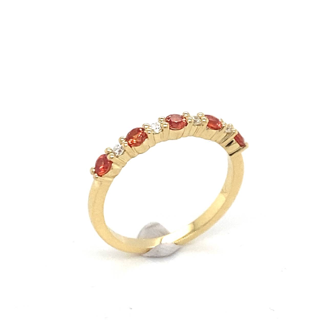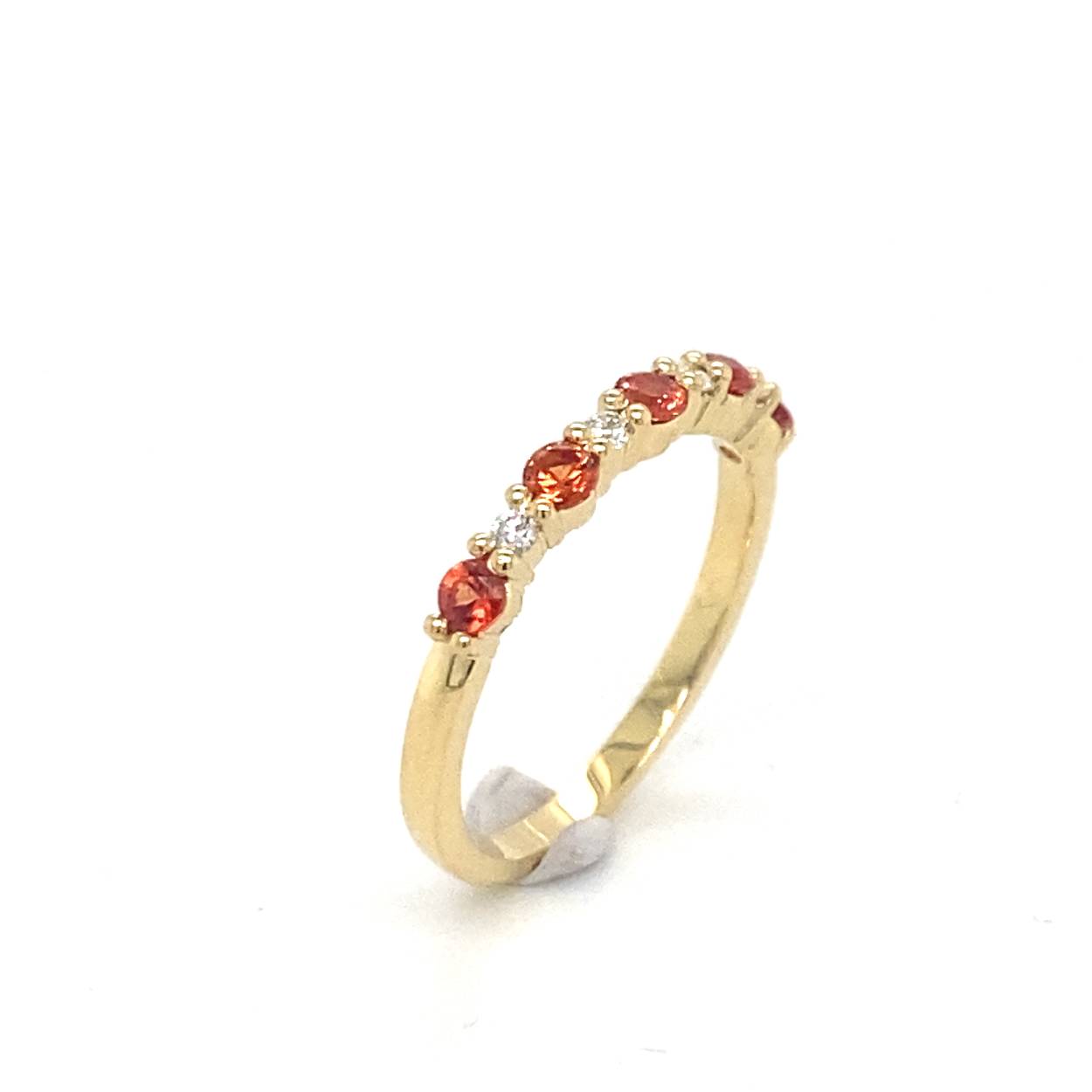 18 krt geelgouden rijring met oranje saffieren 0.08ct  diamant