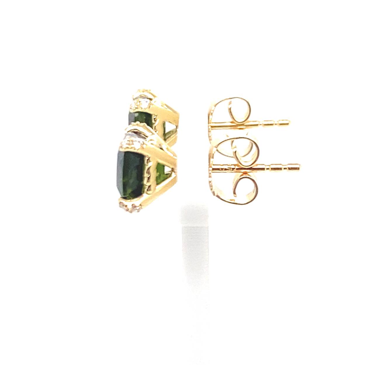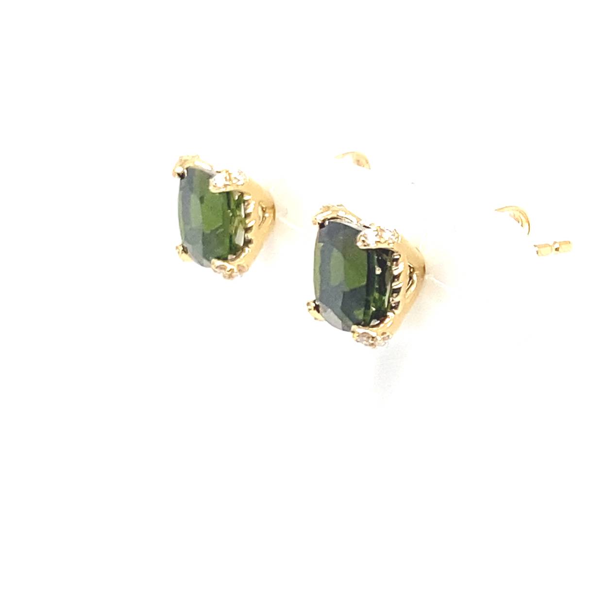 18krt geelgouden R&C oorstekers model romance met groen toermalijn