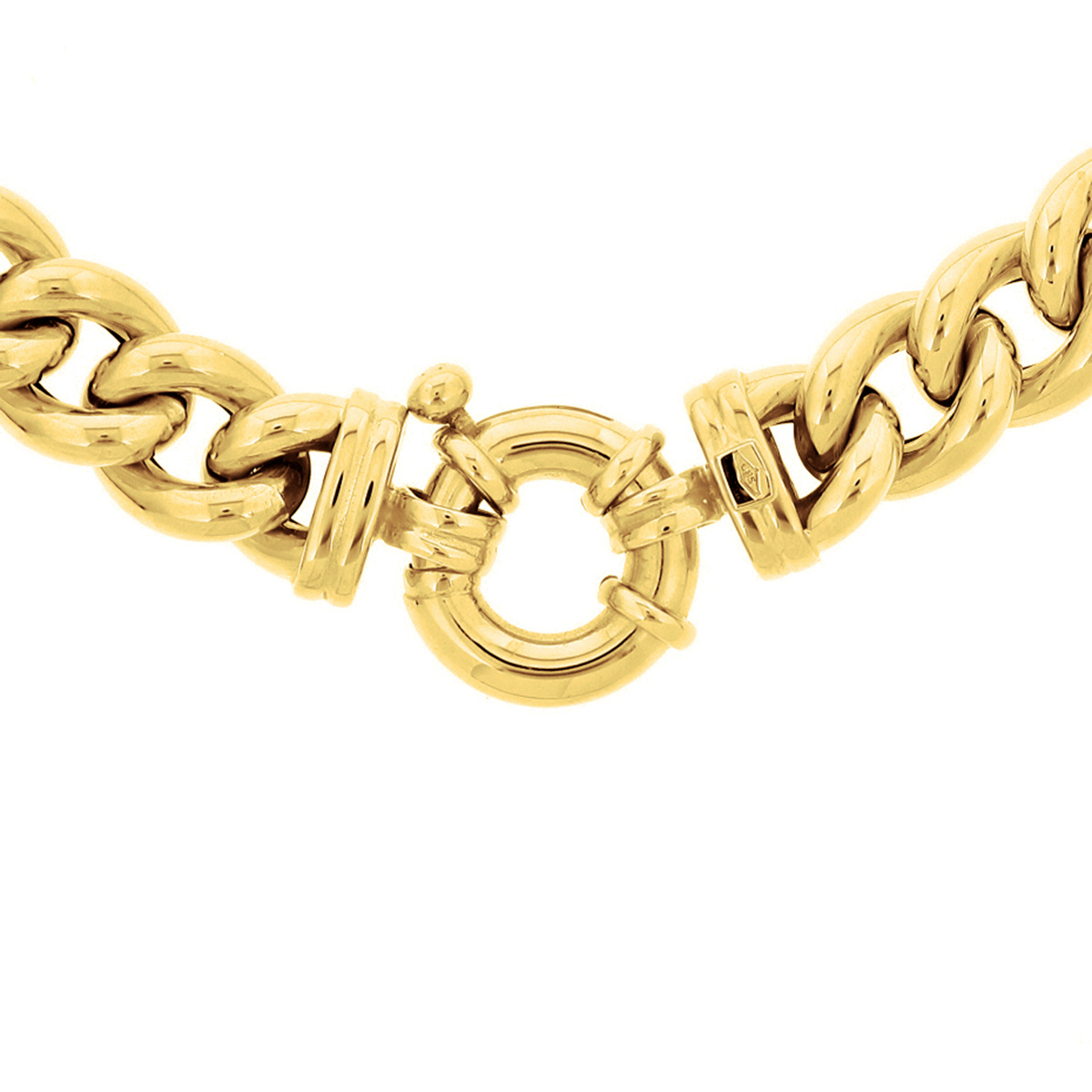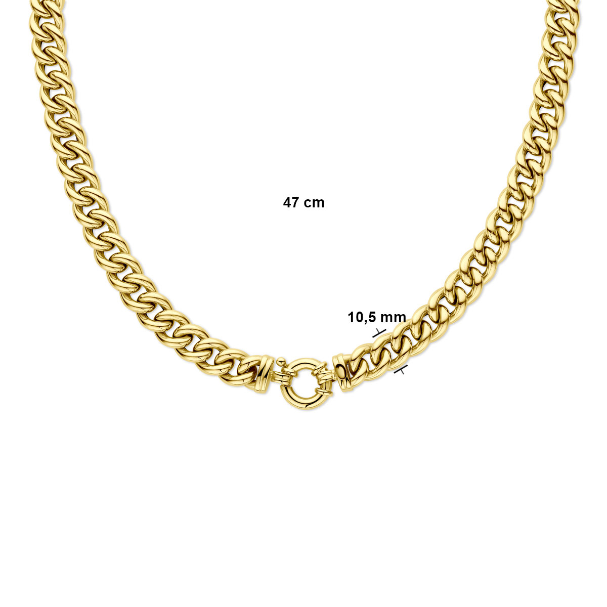 Geelgouden collier met gourmette schakel. De schakelbreedte is 10.5mm.