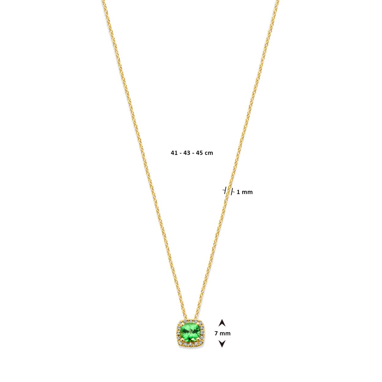 14k Geelgouden collier uitgevoerd met tsavoriet en diamant. Het collier heeft draaglengtes van 41-43-45cm. De totale diamantgewicht is 0.7ct. Uitgevoerd met karabijnsluiting.