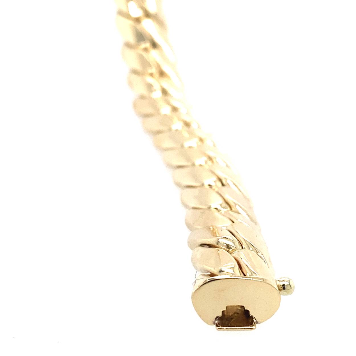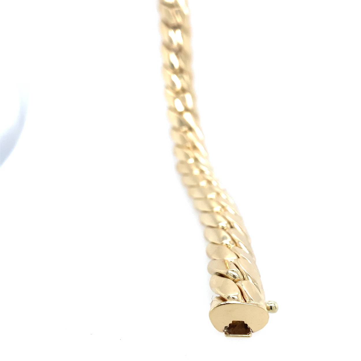 geelgouden breede gourmet armband gesloten door een baksluiting met veiligheids achtje