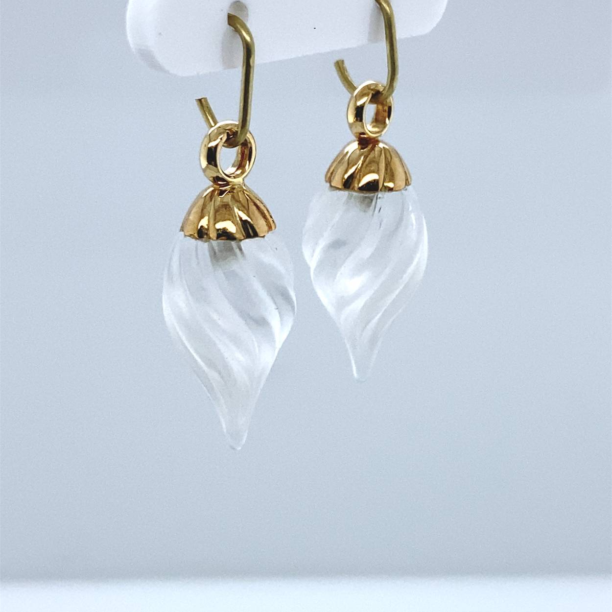 geelgouden oorbedels met geslepen bergkristal mat voor creolen van  ongeveer 2.5 mm