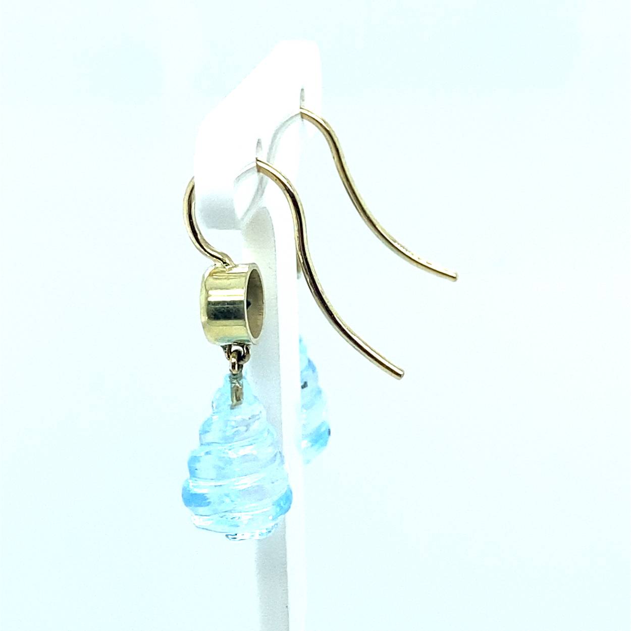 geelgouden oorhaken met ioliet en blauw topaas geslepen druppels