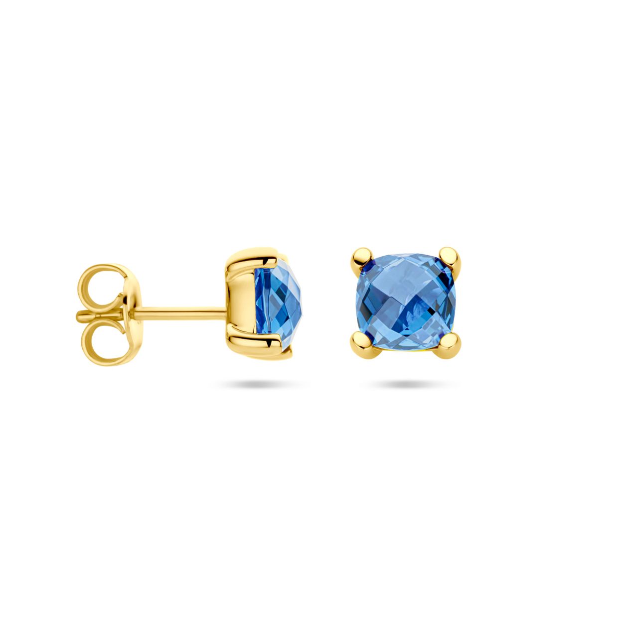 14k Geelgouden oorknoppen uitgevoerd met london blue topaas. De oorknoppen hebben een afmeting van 7x7mm.