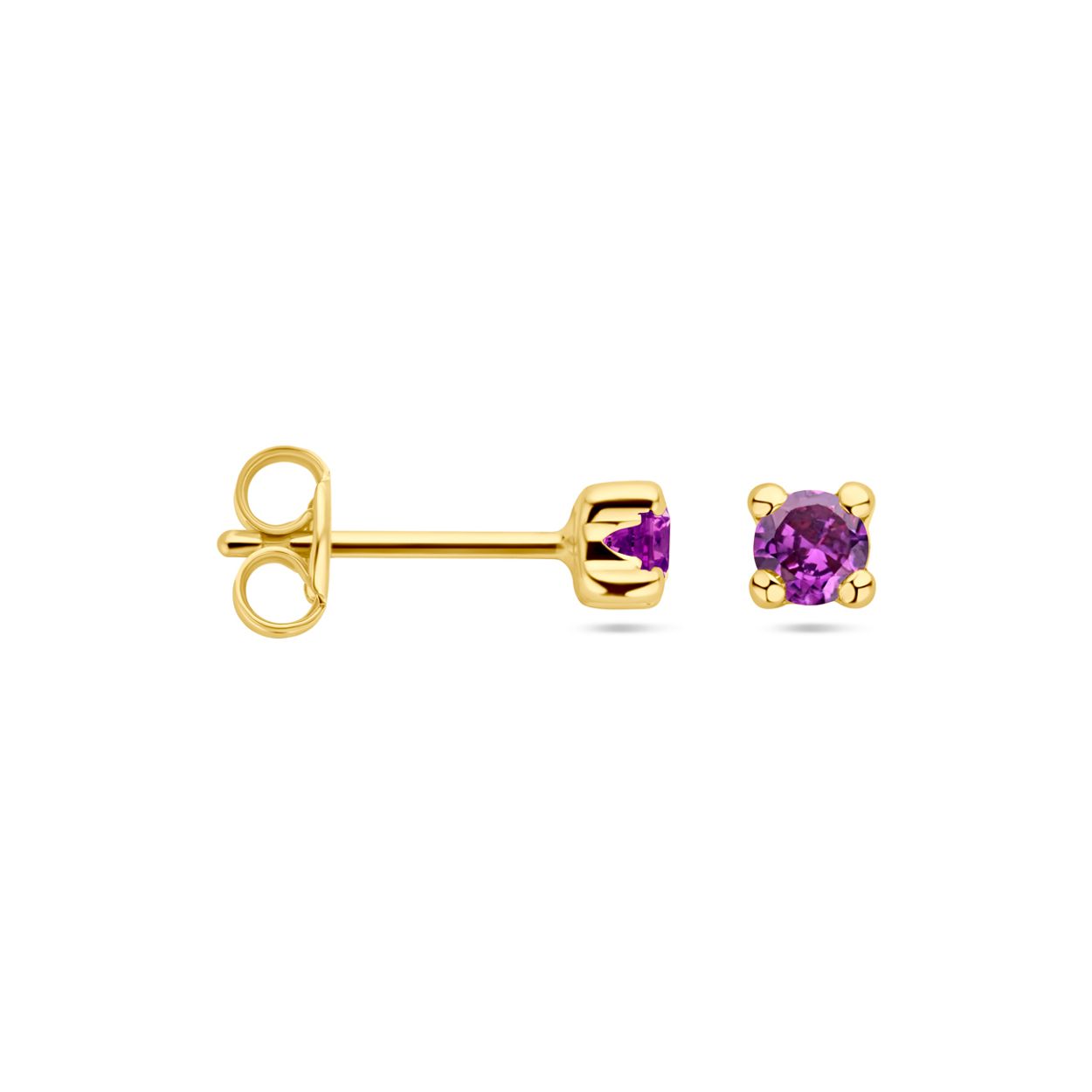 14k Geelgouden oorknoppen uitgevoerd met synthetisch amethist.