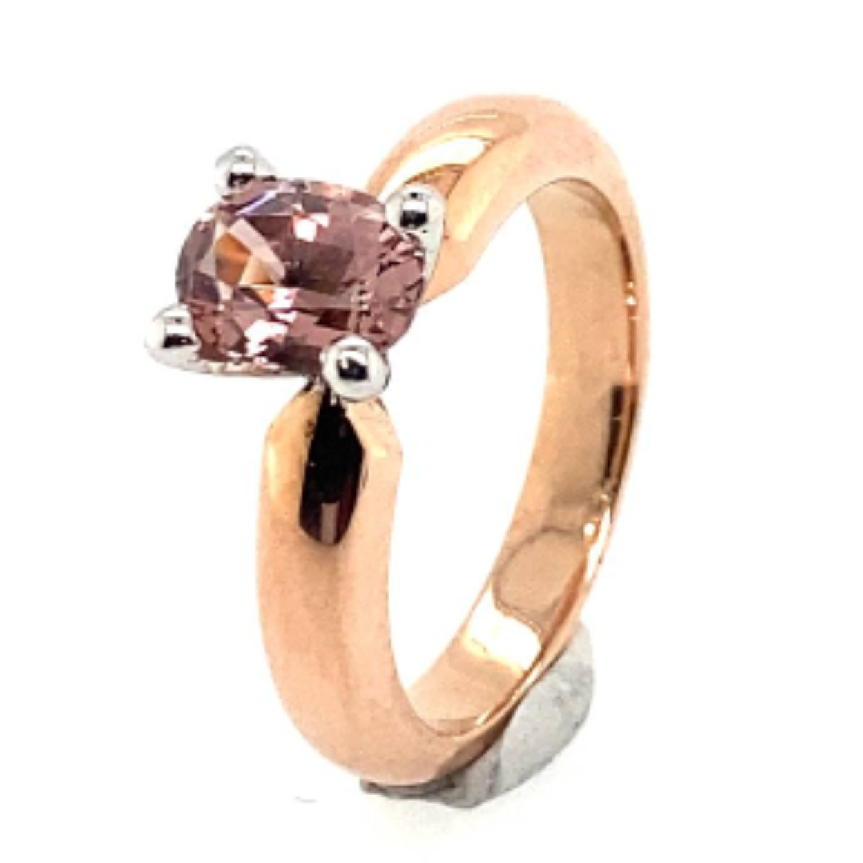 rose gouden handgemaakte solitair met ovaal geslepen spinel