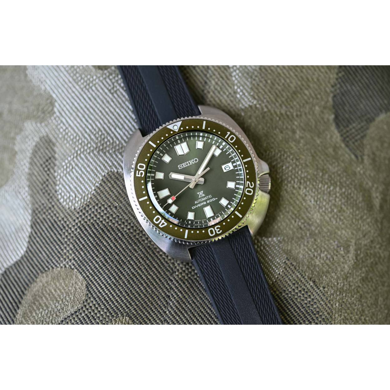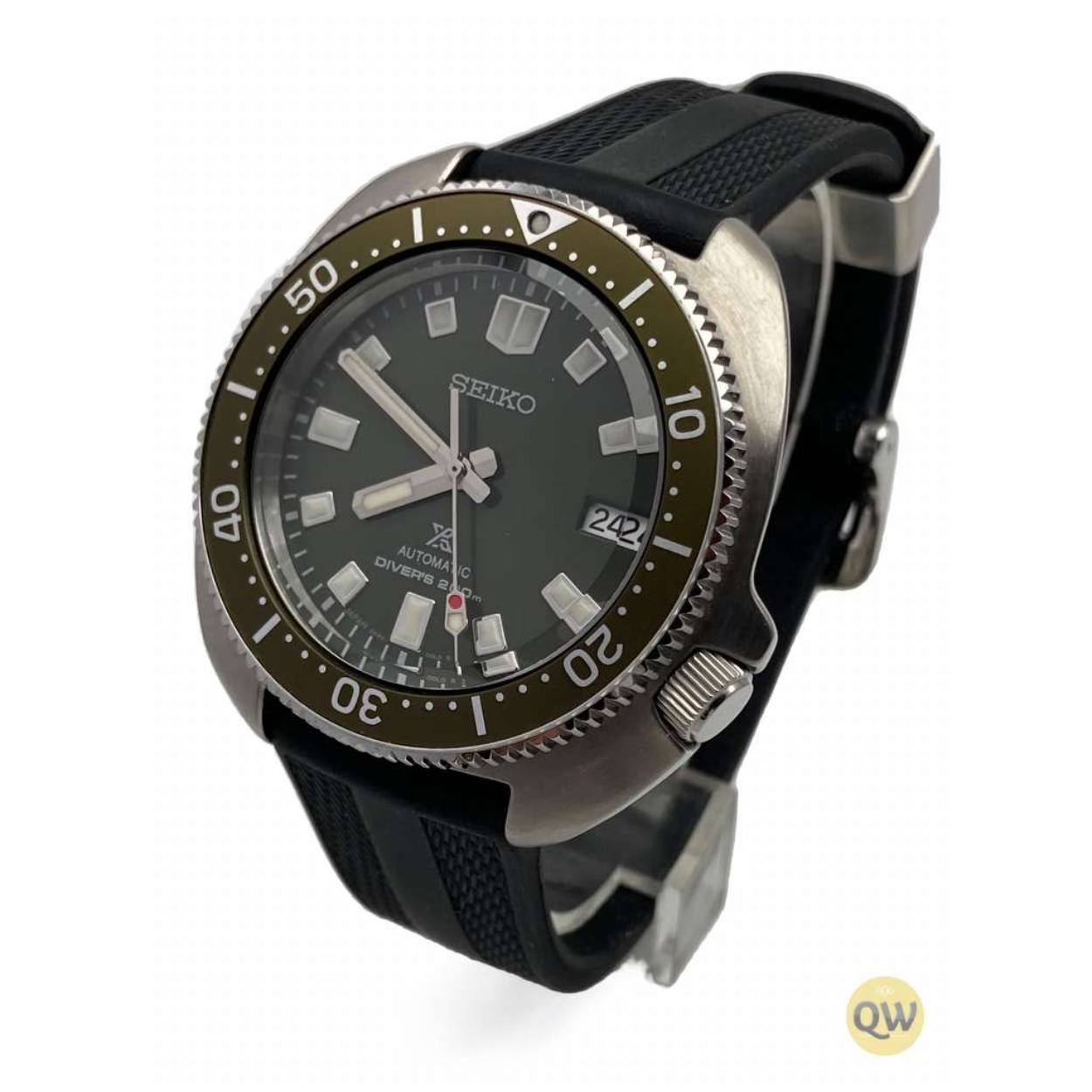 Dit herenhorloge is van het merk Seiko. Het is een analoog horloge gemaakt van siliconen. De diameter van de kast is 42.7 mm en de kast is 14 mm dik.
