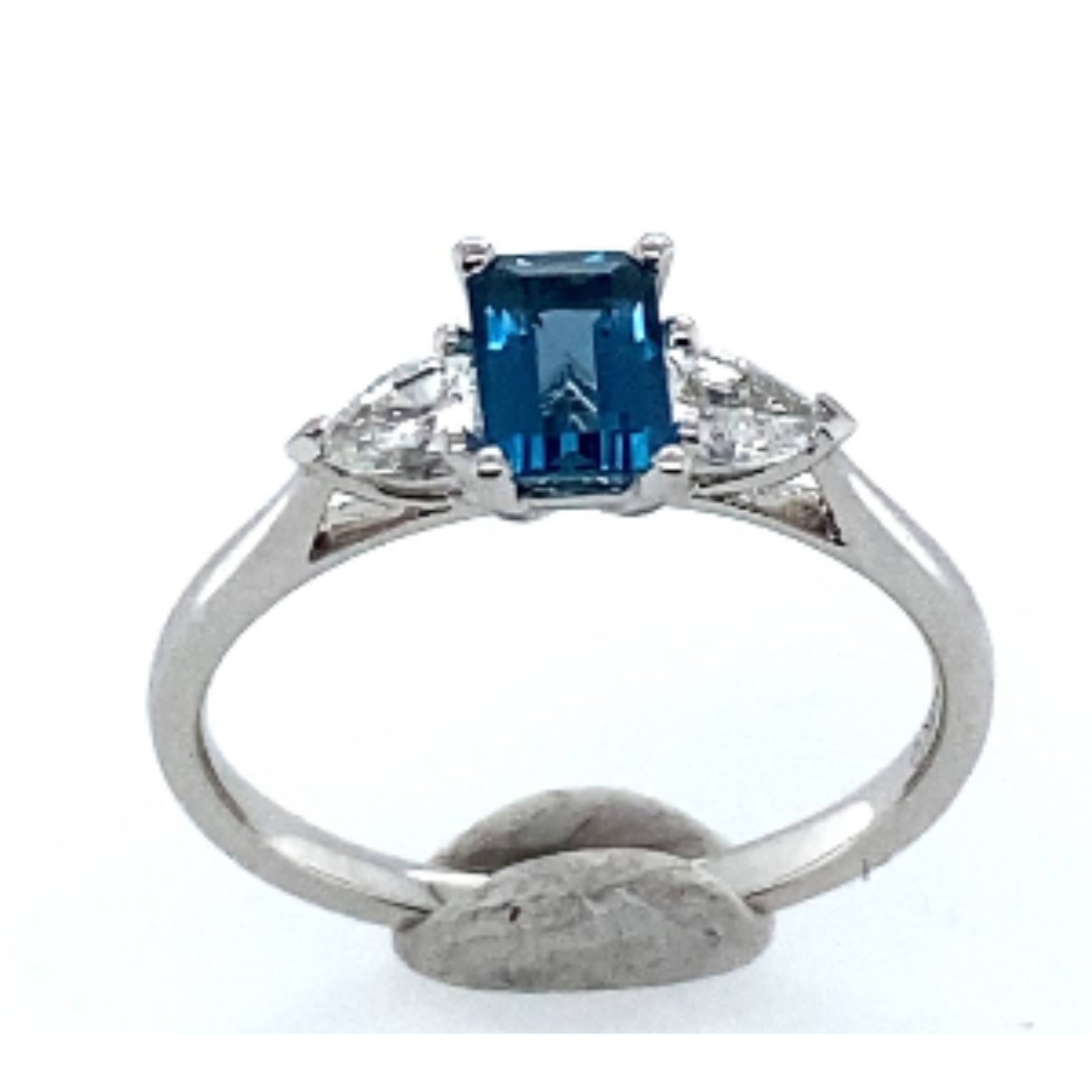 witgouden damesring met london blue topaas en peer geslepen diamant