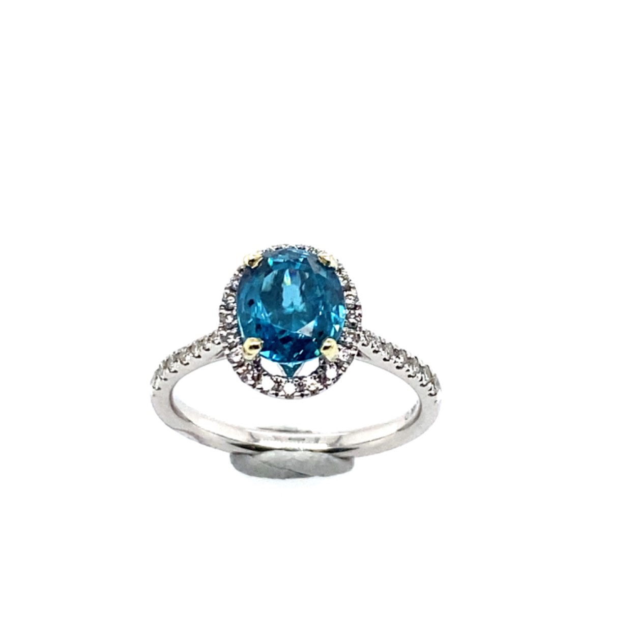 witgouden damesring met natuurlijke zirkoon en diamant