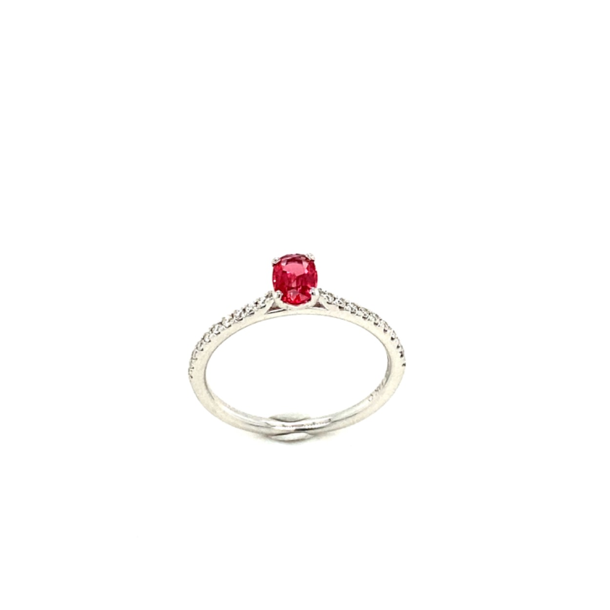 witgouden damesring ring met rode spinel en diamant